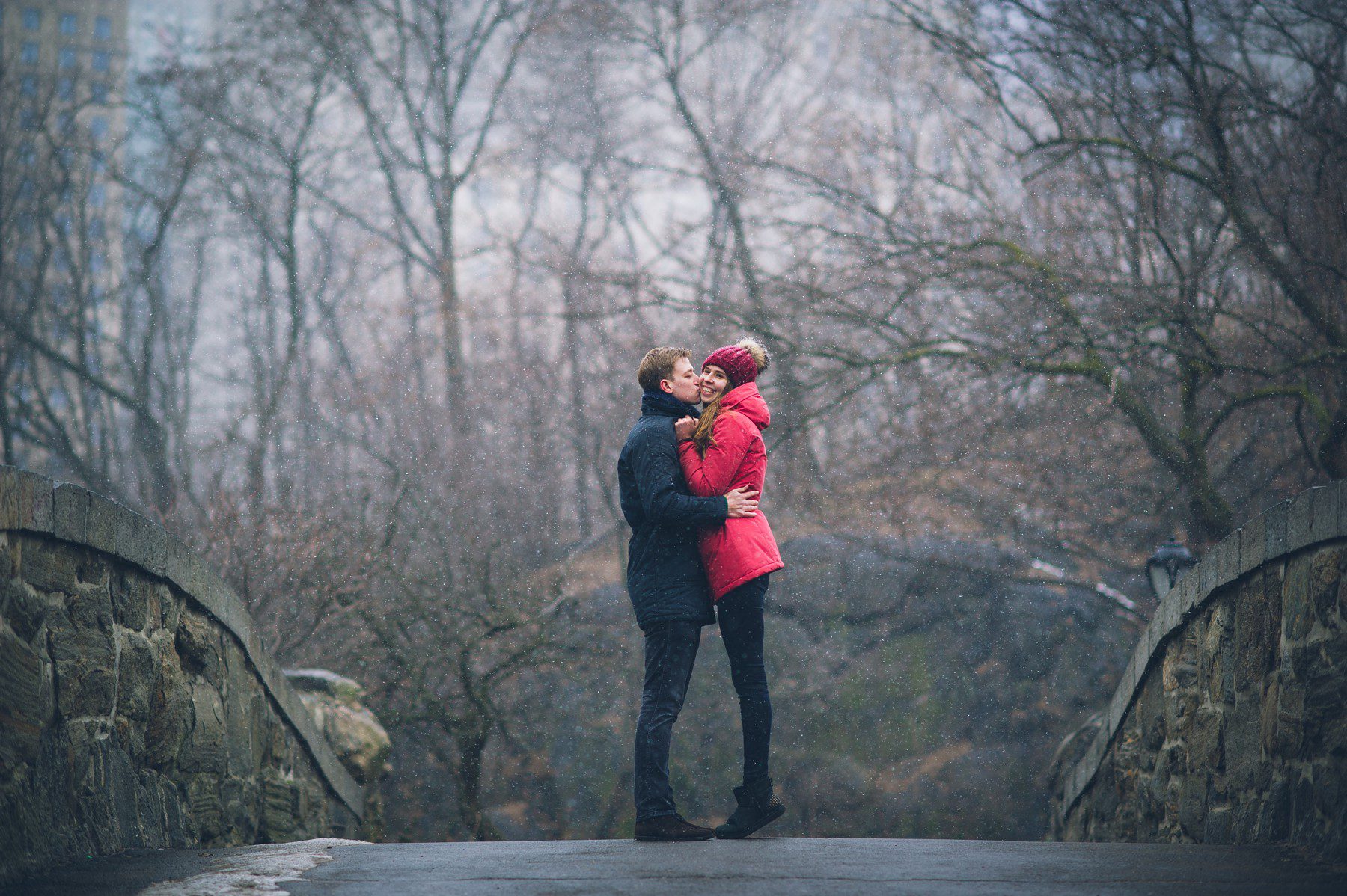 Heute möchte ich euch den Hochzeitsantrag von Marek an Anja im Central Park zeigen. Und was ist besser als ein Heiratsantrag in New York? Ein Heiratsantrag in New York im Schnee! Als ich Marek und Anja sah wie sie zur Gapstow Bridge schlenderten fing es plötzlich an dicke Flocken zu schneien. Das war wie aus einem Film als Marek auf sein Knie ging um um Anja’s Hand anzuhalten. Hinterher spazierten wir noch etwas durch den verschneiten Park der, wegen dem Wetter, recht leer war. Das half uns natürlich ein paar tolle Erinnerung für die Zwei einzufangen. Am Schluss hielten wir noch an der Grand Central an und dann war es auch schon Zeit ‘auf wiedersehen’ zu sagen.